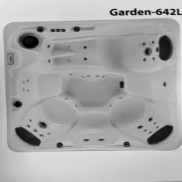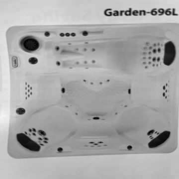 This spa seats 6 and comes with a lounger and 96 stainless steel trimmed jets.